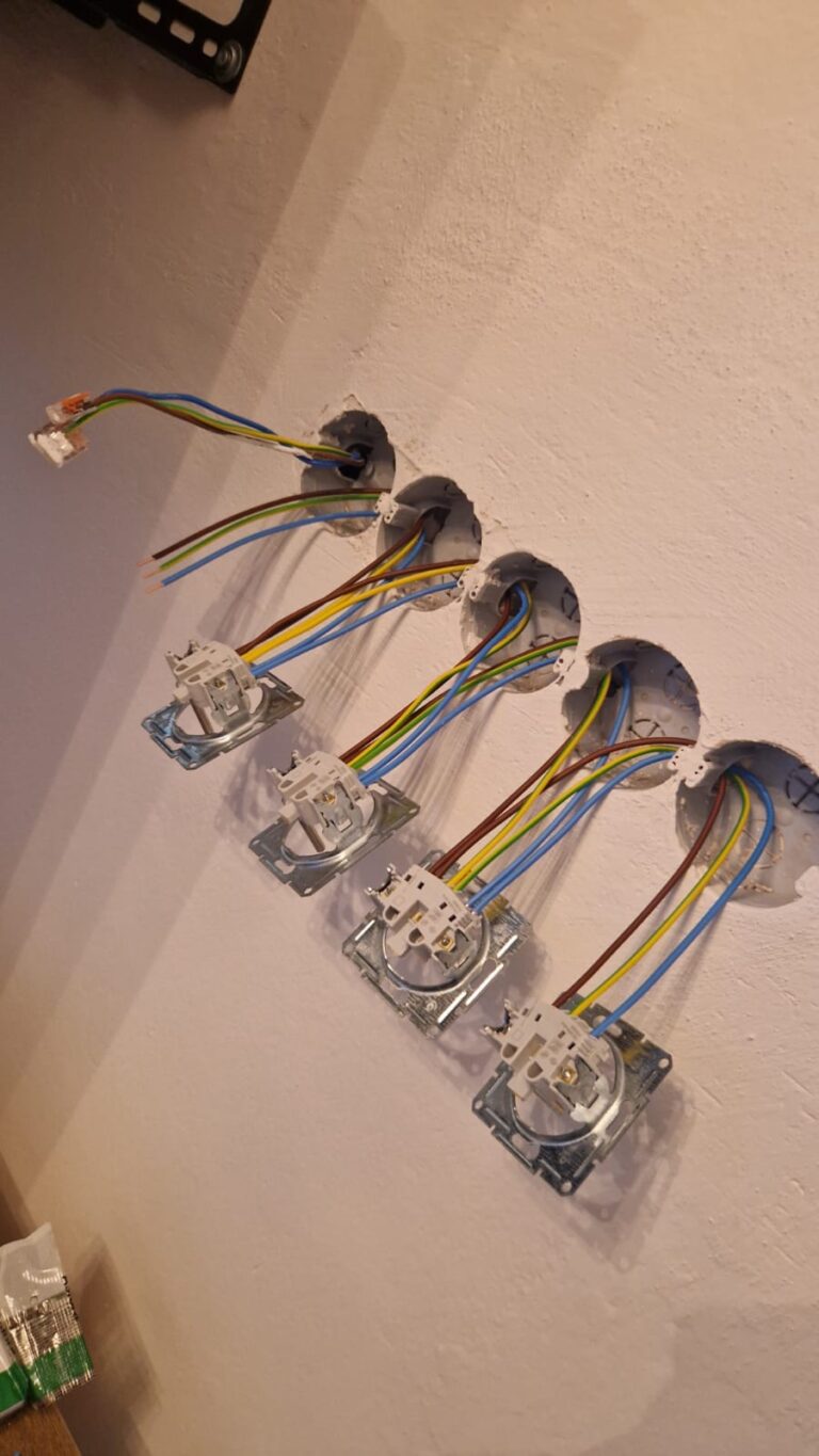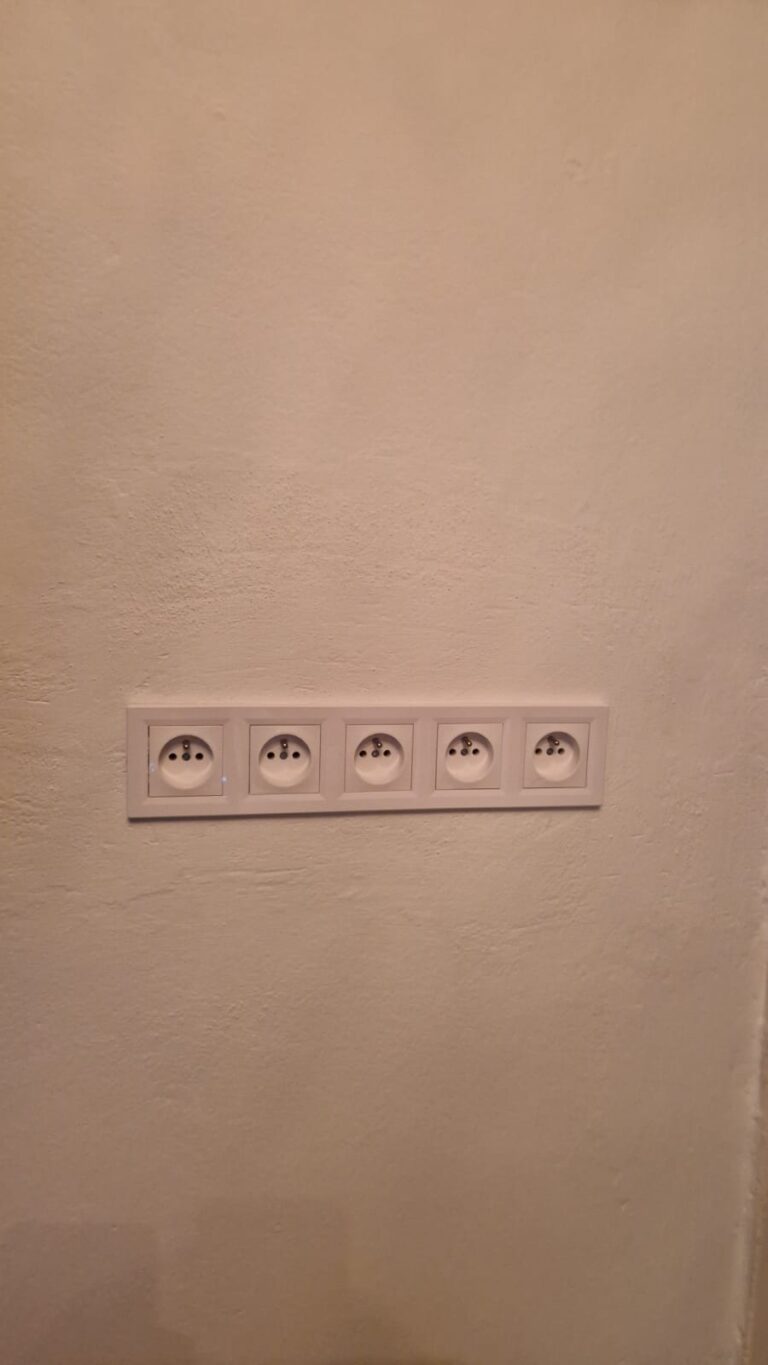 V tomto projekte sme opravovali zle odvedenú prácu inej firmy. Pani nás požiadala skompletizovať a znovu zapojiť niekoľko zásuviek, taktiež sme zavesili televízor na stenu.