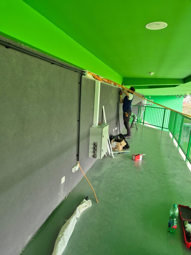 Projekt elektroinštalácie na futbalovom štadióne Tatran v Prešove. Po konzultácii sme malí za úlohu dotiahnuť pár káblov pre klimatizačné jednotky a ventilátory. Po dotiahnutí sme jednu stranu zabezpečili a začali doplňať ističe do rozvodových skríň.Tie sme následne otestovali a spravili revíznu správu na základe skutočného stavu.