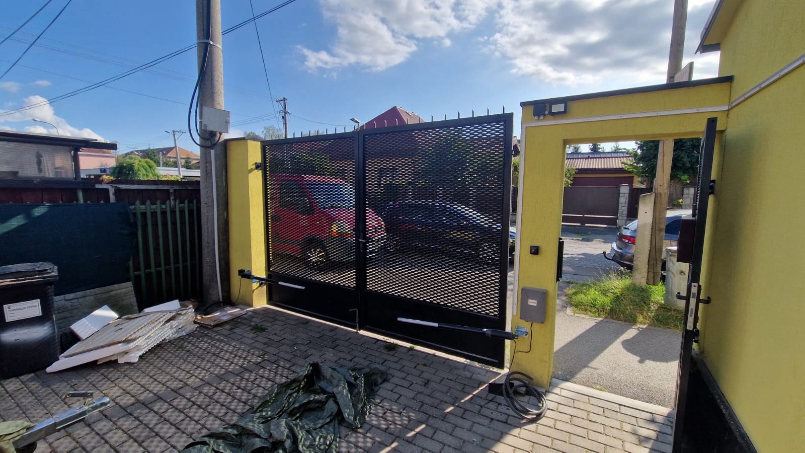 Montáž a zapojenie elektrickej brány v mestskej časti Humenné na diaľkové ovládanie zo signalizáciou,plus par reflektorov.
