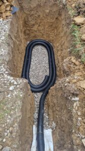 Informácie o projekte Objednávateľ Majiteľ Obec Jasenov Dátum realizácie Január 2025 Po dokončení odvodnenia domu sme pristúpili k výstavbe trativodu. Bola vykopaná priekopa, nasypaný makadam