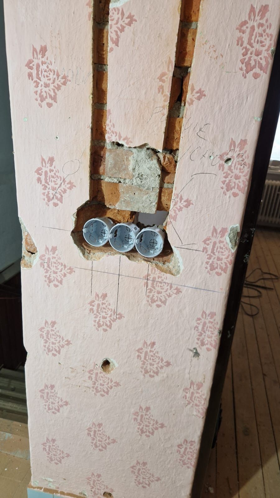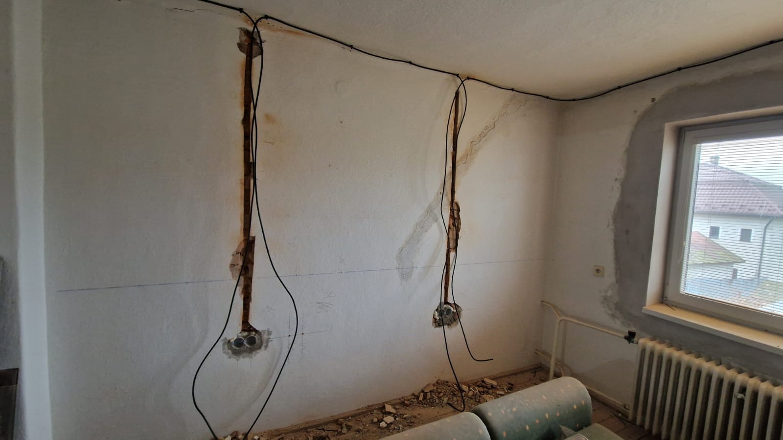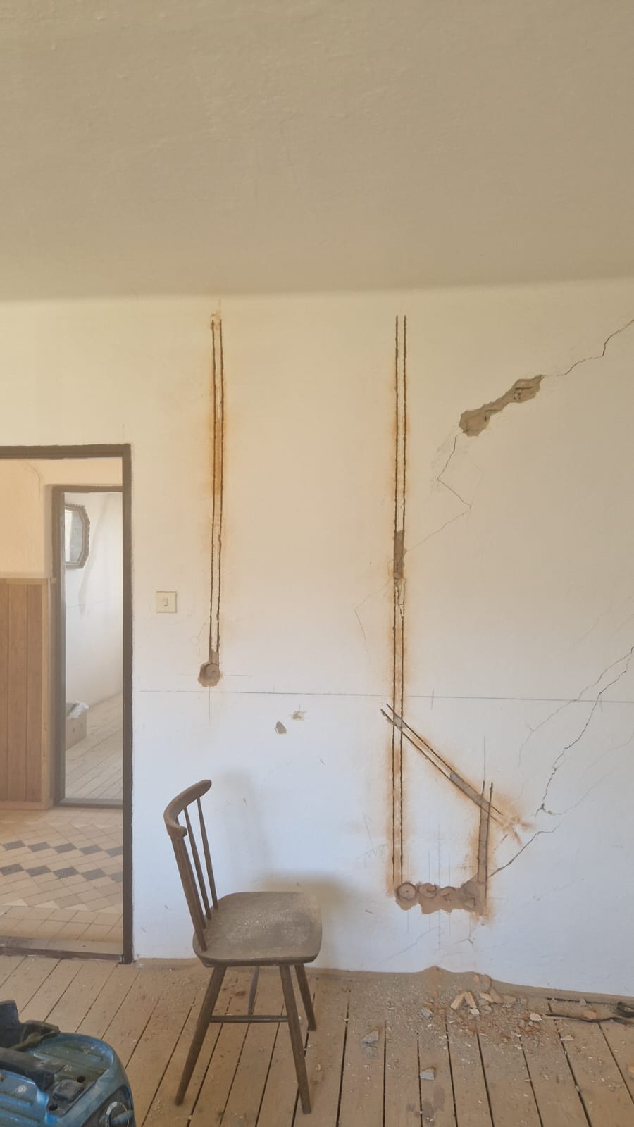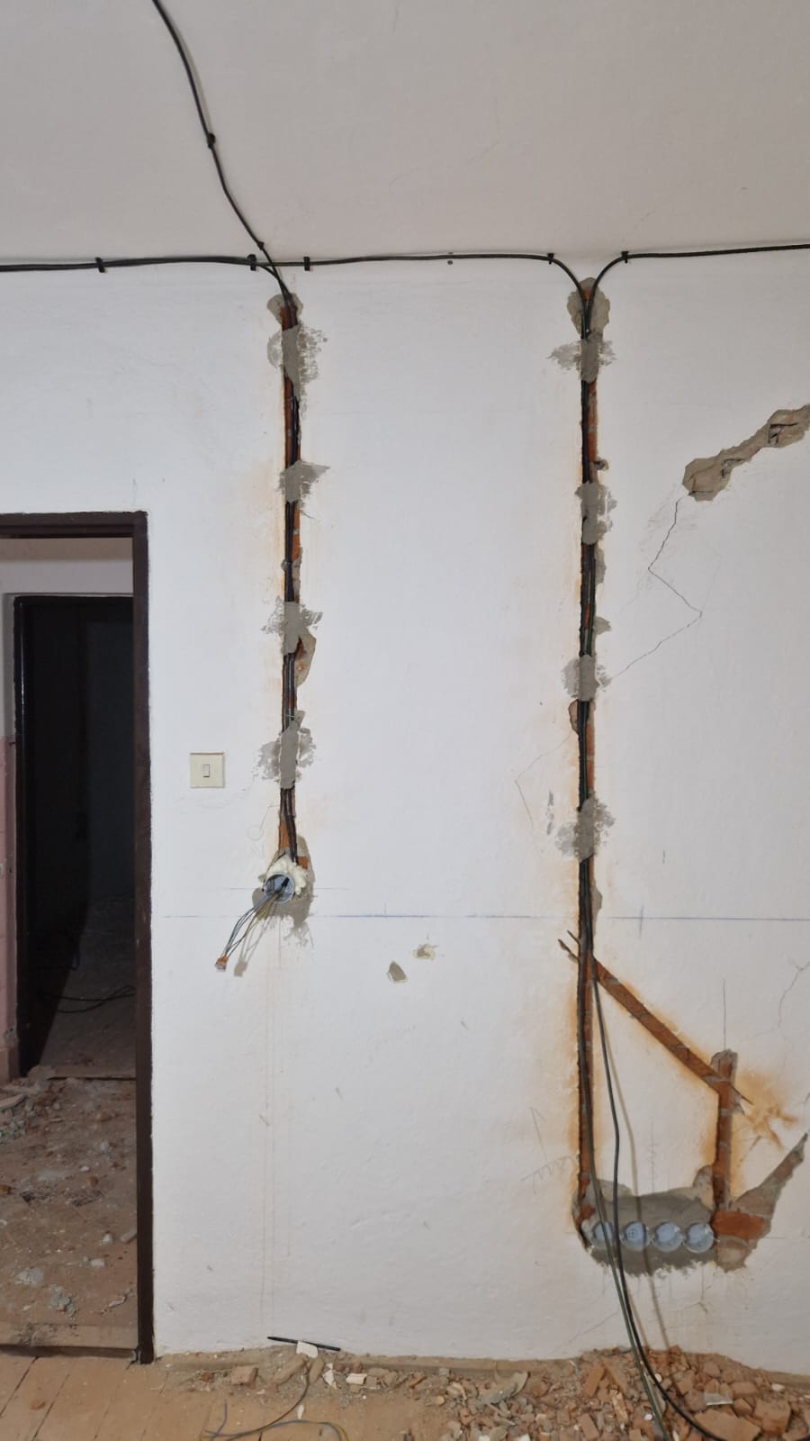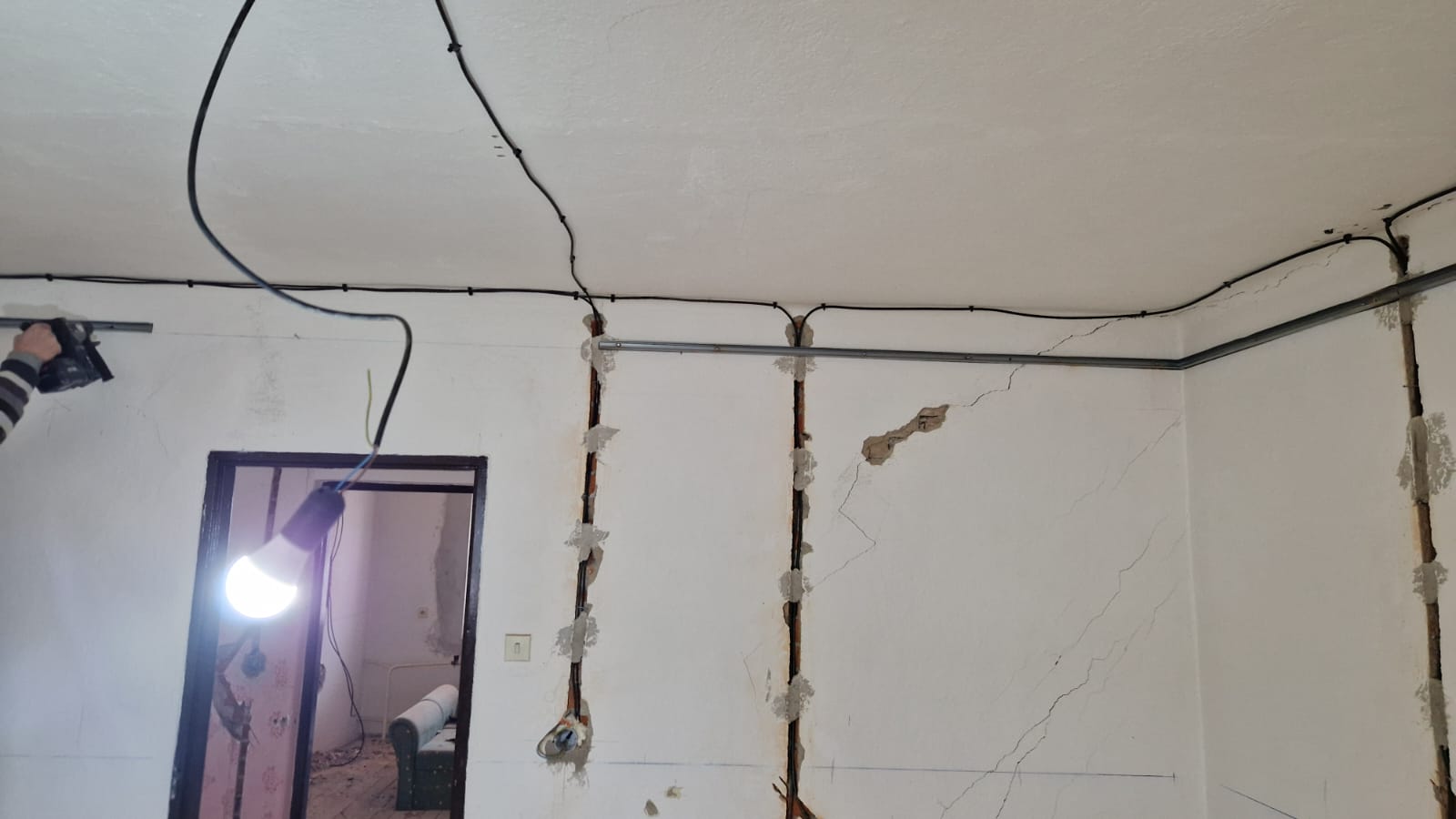 Výmena elektroinštalácie v staršom dome. Označenie, frézovanie, sekanie, drážkovanie a natiahnutie nových káblov do podružného rozvádzača.